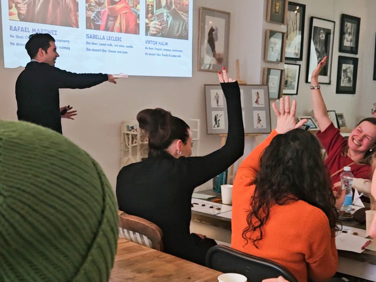 So langsam seid Ihr schon auf einem guten Weg, aber jetzt fehlt noch eine Sache. Um Euer Wissen unter Beweis stellen zu können, solltet Ihr selbst Schokoladen-Events, Tastings oder Workshops anbieten. Zudem hilft es, wenn Ihr zusätzlich Content auf Social Media macht und dort Eure Expertise zeigt. Wir haben zum Beispiel das Schokoladen-Krimi-Event erfunden und uns so international schnell einen Namen gemacht. Auftritte in Amsterdam, Chemnitz und auch auf dem größten Schokoladen-Festival Portugals waren die Folge.
